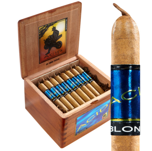 ACID by Drew Estate is a fan-favorite infused cigar line known for its bold flavors and aromatic profiles. Crafted with premium Nicaraguan tobaccos and infused with a secret blend of essential oils, ACID cigars deliver a one-of-a-kind experience. Leading the pack is the iconic Blondie—a smooth, sweet, and complex smoke. With over a decade of acclaim, Blondie is a true standout and a modern classic in the infused cigar world.